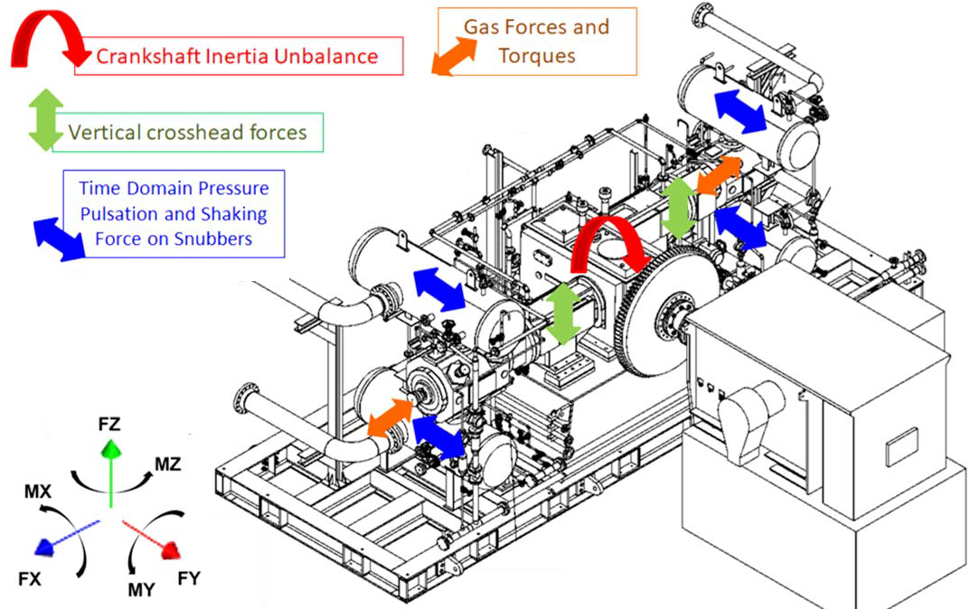 왕복동 압축기(Reciprocating Compressor)의 베이스플레이트(Baseplate)는 운전 시 발생하는 여러가지 종류의 가진력(Excitation Force)을 고려하여 설계되어야 한다. 베이스플레이트에 대한 진동 설계(Vibration Criteria)에 대한 기준은 API 618에 언급되어 있다.