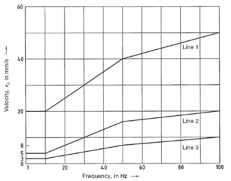 | Line | Type of Structure | Guideline values for velocity, v in mm/s | |||